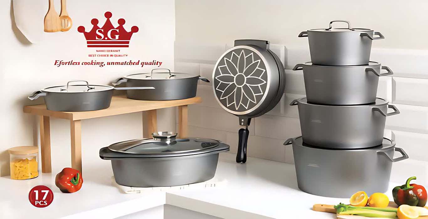 سرویس قابلمه برند ام جی اس 17 پارچه گرانیت طرح ایتالیا C