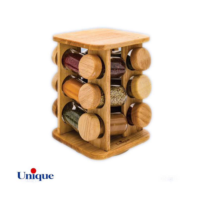 ست ادویه گردون 12 تایی ایستاده مربع چوبی یونیک UN-6111
