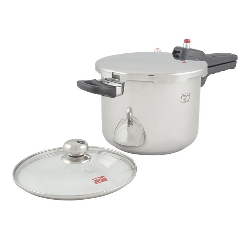زودپز استیل کف سه لایه ۶ لیتری پارس همراه با درِ پیرکس سایز ۲۲