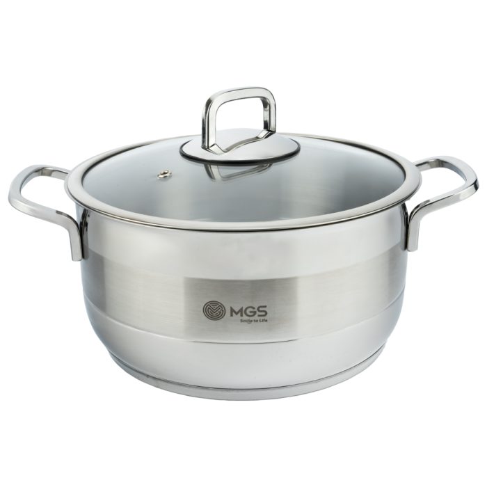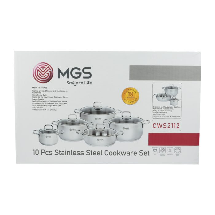 این سرویس قابلمه 10 پارچه استیل شامل چهار قابلمه و چهار درب پیرکس بعلاوه یک تابه دو دسته همراه درب است. جنس این ست، استیل ضد زنگ است. نحوه ساخت این سرویس قابلمه 10 پارچه استیل فورج و دستههای آن به بدنه متصل شده است.