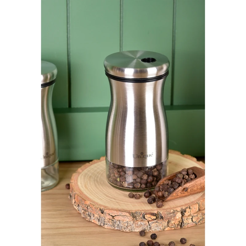 جا ادویه یونیک مدل UN-1790 با طراحی ساده، شیک و بدنه استیل، گزینهای کاربردی و زیبا برای نگهداری انواع ادویه در آشپزخانه است. ترکیب استیل مات با بدنه شفاف، علاوه بر ظاهر مدرن، امکان مشاهده میزان ادویه داخل ظرف را فراهم میکند.