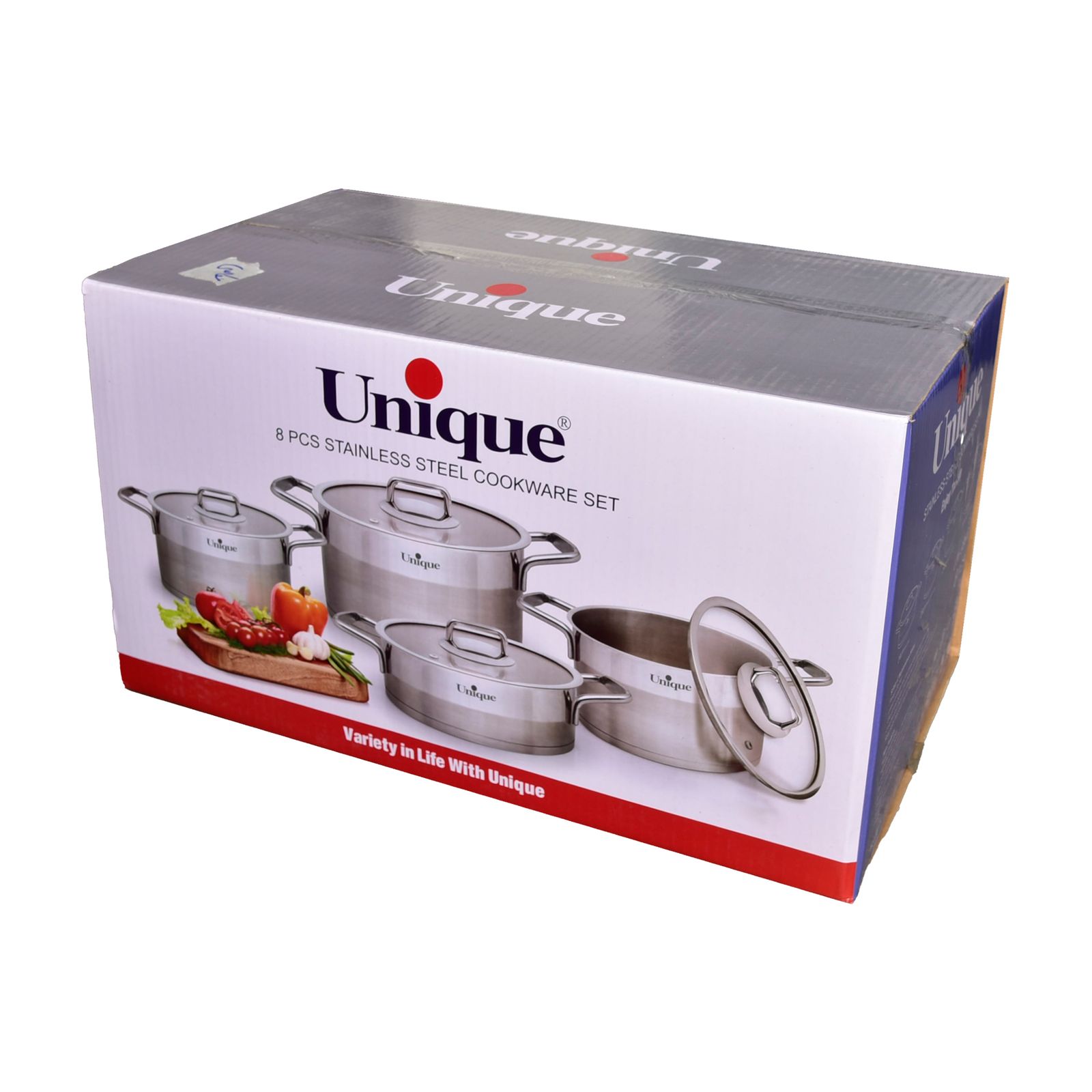 برندیونیک Uniqueجنس بدنهاستیلدستگیره هااستیلجنس دربپیرکس فلتسایزسرویس ۸ پارچه قابلمه ۲۰_۲۴_۲۸ تابه ۲۴ضمانتاصالت و سلامت فیزیکی