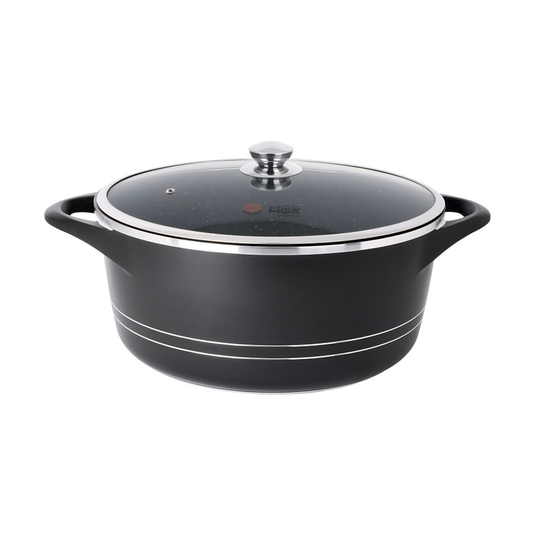 قابلمه تک طرح ایتالیا سایز 36 روکشی از جنس گرانیت نچسب دارد که به آشپزی آسان و بیدردسر کمک میکند. درب این محصول تخت و از جنس پیرکس است.